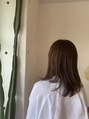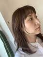 バングと顔まわりにに個性が光る、ミディアムヘアー。ピアスなどのアクセサリーとも相性抜群!カラーは透明感たっぷりのコーラルピンク。カラー剤の中で一番明るく透明感のある色で顔まわりにさりげないハイライトをプラスしました。