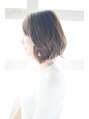 長めのバングにゆるいカールのボブスタイルです。大きなカールは動きをだし、人気のアレンジスタイルです。