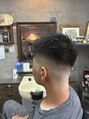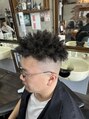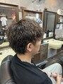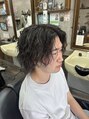 前に流しやすいカット+ツーブロックと後ろは刈り上げてカールがしっかり出るパーマをかけて前に持ってくるパーマをかけました。印西/千葉ニュータウン
