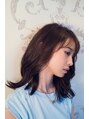8レベルのアッシュブラウンでオレンジに傾きやすい髪質をカバーさせていただきました。レイヤーのないまとまりやすいスタイルになっております。前髪をシースルーで短めにすることで強さもなく、女性らしさを出してます。