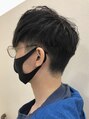 サイド、バックをツーブロックで短く刈り上げて、フロントにボリュームがでるようにスパイラルパーマを掛けました。眼鏡とも相性が良くカッコイイです!