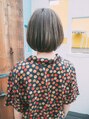 あごラインボブです。顔まわりは前上がりで小顔効果◎前髪は薄めで長さは目上ギリギリです。顔まわりに短い毛をつくり、巻いたりして動きをつけれるようにしています。カラーはアッシュベージュで透け感のあるカラーに!