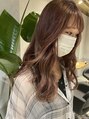 ピンクグレージュカラーです(^^)ニュアンスのあるカラーが得意です。ケアブリーチで、ツヤのあるハイトーンにしましょう(^^)