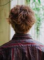 少し長めのメンズマッシュスタイルの無造作アレンジスタイルです。カット自体は少し重めですが、パーマでしっかりカールを作ります。センターパートで分けることで重すぎない雰囲気を作りだすことができます。スタイル名