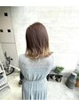 外ハネミディアム 毛先だけの金髪を活かした長さになっております