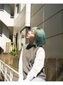 透明感のあるミントカラーはこの夏のおすすめ。切りっぱなしボブの顔まわりに仕込んだダブルラインが、耳にかけたり風で動く度に違った表情を見せてくれます。