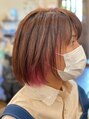 イヤリングカラーを鮮やかなピンクに仕上げ、下ろしていても耳にかけても可愛い感じに♪