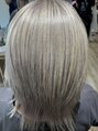 バージン毛からのホワイトシルバーカラーケアブリーチで丁寧にブリーチし黄味を出来るだけ消したホワイトシルバーカラーです。