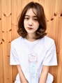 顔周りの表情を明るくそして軽く見せるシースルーバングに、立体的な無造作ウェーブでミディアムヘアを☆顔周りの後毛で小顔こうかをだし、短いながらも、毛先にボリューム感をだします。