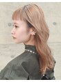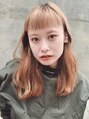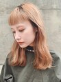 ケアブリーチを使い低ダメージのオレンジベージュ。ハイトーンのオン眉フルバングでトレンドのスタイルです。