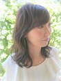 『働く女性のオフは遊び心満載!』ナチュラルな明るさのマット系で、普段は落ち着いた感じ。太陽の下では、空気を含んだような軽さがでます。あまり段を入れず、間引くようなすき方で軽く見えるようにカットしました。