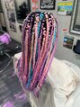 パステルユニコーンカラーで毛先はゴム留めゆめかわいいブレイズスタイルです!