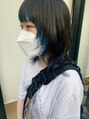 ブルーのフェイスフレーミングカラー!ブリーチベースをしっかり明るくすることで、鮮やかで綺麗なカラーにすることができます!後ろの毛先にもポイントハイライトのブルーを入れています!ウルフカットとの相性もばっちりです!