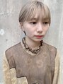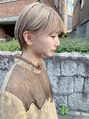 ハイトーンベージュのショートに。前髪からサイドにつながるマッシュショート。