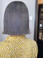 ぱつっとした切りっぱなしスタイルです。カラーはブリーチしてからアッシュグレーでカラーリングしています。