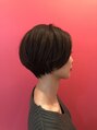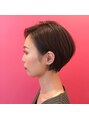 前髪が長めの大人ショート。襟足はスッキリなのがポイントです。カラーは明るすぎずアッシュブラウンで大人っぽく。