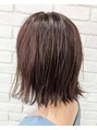透け感たっぷりのお色に切りっぱなしボブで小顔ヘアに♪