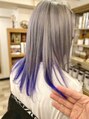 グレイシルバー×コバルトブルーブリーチ数回は必須のスタイルにはなりますが、個性的にカラーを楽しみたい方や、周りと差をつけたい方にはオススメな、派手派手カラーです(*^^*)