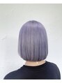 アゴ下ラインのナチュラルな内巻きボブ。カラーはブリーチしてから透明感あふれるホワイトアッシュ。色落ちも綺麗です。