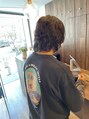 おしゃれさんに人気なウルフスタイルですが、重めのシルエットにし、さらに個性的な印象に仕上げました。後ろから見るとスクエアな感じですが、パーマで動きを出して、ハネさせたりして遊びが出せます。襟足をしっかり伸ばしてご来店下さい!