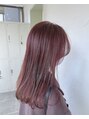 カットは自然にまとまるように内巻きワンカールロングヘア。カラーは明るめのチェリーレッドカラー。※ベースの色次第ではブリーチ無しでも可能です。 ご相談ください。