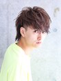 オーセンティックなサイド前下がりラインのマッシュウルフ ベース。サイドのツーブロックは少し深めでデザイン性をアップ。スタイリングのやり方はサロンでレクチャーします。