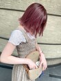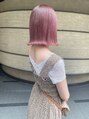 ペールピンク◎ブリーチ必要なカラーです。髪が艶っぽく、綺麗に見えるのでおすすめです!カットは切りっぱなしボブ。外はねでセットしました◎