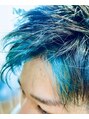ツーブロックでスッキリ感あるスタイルを作り夏らしく涼しげに。一味違う変化とオシャレ感をプラスする前髪のインナーをオーシャンブルーに!ブリーチ×2の後でスペシャル調色したブルーを入れました。透明感の高い爽やかな夏らしい色味が最高です!