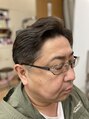 メガネを掛けやすい程度に耳上までツーブロックを入れ、ボリュームの出にくい髪質なのでセニングは毛先のみでキレイに整うようにカットしました。
