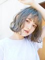 ダブルカラー後、ミントグリーンを薄めに乗せたラフな抜け感のある外ハネボブです。揺らぎのリラックスな雰囲気で、人気なスタイル。