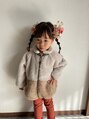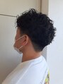 つむじからすごく前に生えている方なので、立ち上がるように細かめに巻いてます。