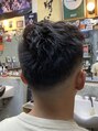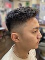 直毛でスタイリングしにくい髪質には、クセ毛風パーマがオススメ。かかり具合いの強弱は好みにまかせて、毛先を遊ばせ楽チンスタイリング。決めすぎない程度のスタイリングがGOODです。あとは、サイドパートにラインを入れてガッツリフェードで決まり。