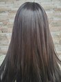 色落ちしやすい方なのでグレー系のカラーで暗くしました。色落ちしてもオレンジっぽくならないようにブラウンを使わず暗くしました(^^)ダメージを気にしていたので痛みの少ないにGLTトリートメントカラーでカラーリングをしました☆