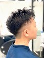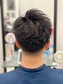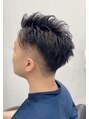 周りを3ミリで刈り上げ、クセを活かしたツーブロックスタイルに。