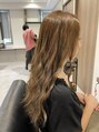 ハイライトの履歴を活かして、馴染むような柔らかい色味♪巻くことでよりハイライトを楽しめるようなスタイル♪