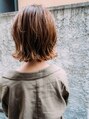 少しの段差、量感調節でくびれの出やすいスタイルにしております。頭のシルエットが綺麗に見えるのでコンプレックスを抱えてる方にもおすすめ。少し明るめのカラーで重く感じすぎないスタイルに。前髪があってもなくても合うスタイルになります。