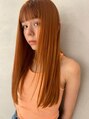 ハイブリーチ後にオレンジカラーにカラーリングしました。赤みが強いオレンジではなく、黄色味寄りのオレンジです。丁寧にブリーチで明るいベースを作ります。シンプルなぱつっとロングやロブ、相性良いカラーです。ぜひお任せください。