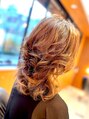 リバース&フォワードにランダムに巻いたカールをつけることによって、ハイライトカラーが効いた動きのあるヘアースタイルになります。