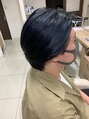 ブラックに見えるかもしれませんが、ブリーチ毛なのでネイビーブルーをいれてもそこまで重く見えません。しっかり個性も出せてカッコイイクールスタイルです!