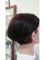 アゴラインのやや前下がりクラボブ!毛量調整で 軽さを!全体は 地毛に近い6レベルで抑えアクセントで サイド下に インナーカラーを!お仕事の関係で 全体を明るくできない方に オススメです