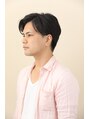 多毛、硬毛で少しでも伸びてきたらサイドが膨らんでしまい、丸いシルエットになりやすいのでサイドは2ブロックにして膨らみにくくしました。分けてバック方向に流すことによって清潔感が出るように。