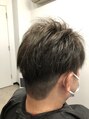 サイドのツーブロック部分がはっきりと見えないようにしつつ、バックはスッキリと刈り上げにしています。