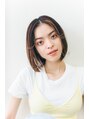 パタンと切り揃えた、潔いボブスタイル。さらには、毛先に柔らかさの出るようにカットしているため、まっすぐ、外ハネ、両方のスタイリングが楽に決まります。顔まわりの一部分だけカールをつけた、シンプルの中に遊び心をプラスしたスタイルです。