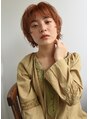 襟足を少し長めに残したショートウルフがベース。毛先中心にワンカール強のニュアンスパーマで動きをプラス!!(写真はアイロンで巻いています)カラーはオレンジピンクで可愛く♪(写真の色はブリーチのダブルカラーなので、パーマと一緒には出来ません)