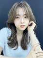 顔まわりレイヤーでヨシンモリやワンホンヘアしやすいスタイルに カラーはベージュ系で抜け感を出すことでボリュームのあるスタイルでも重さを緩和できます