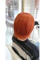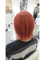 ブリーチ1回のオレンジカラーです☆鮮やかなオレンジがとっても爽やかで夏にもってこいカラーに仕上がりました。全部は難しい方でもインナーでオレンジもとっても可愛いですよ☆