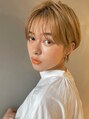 耳にかけたコンパクトショートでスッキリした大人可愛いスタイルに。前髪は少し長めのシースルーバングで束感をしっかり作り抜け感も抜群。ハイトーンのシアベージュカラーで透明感とツヤもプラス。