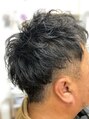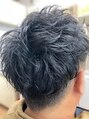 サイドからバックをツーブロックでスッキリと刈り、アイロンパーマで張り出すサイドをスッキリと収め、トップにはふんわりとボリュームを出しました。
