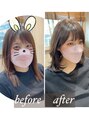 顔周り、もみあげにレイヤーを、前上がりボブスタイル。軽めレイヤーのミディアムから、鎖骨ボブにスタイルチェンジ。カラーはアッシュベースのダークグレージュに*