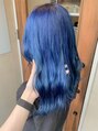 鮮やかなブルーカラー!ブルーに、ネイビーと紫を混ぜているので、色落ちもかわいいカラーになります。ブルーのカラーは、艶も出してくれるので、パサつきが気になる方にもオススメなカラーです!ブリーチなしでもできるブルーもあるので、ご相談ください!